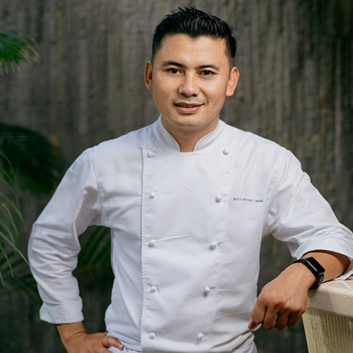 Chef Bayu Retno Timur memimpin dapur di Mandapa, hotel mewah Ritz-Carlton yang terletak di Ubud. Ia mulai bekerja di sana pada tahun 2015, setelah memulai kariernya di dunia pastry dan roti. Sebelum bergabung dengan Mandapa, ia sempat menjadi chef di dua restoran di Bulgari Resort Bali. Selama 14 tahun terakhir, Chef Bayu telah berkarya di berbagai hotel dan restoran kelas atas, serta meraih sejumlah penghargaan, termasuk juara di ajang Blackbox Indonesian Final. Ia juga pernah mewakili Indonesia dalam kompetisi memasak bergengsi, Bocuse d’Or Asia-Pacific, pada tahun 2018. Dikenal dengan semangat belajarnya yang tinggi, Chef Bayu gemar mengeksplorasi bahan-bahan lokal dalam setiap kreasinya. Ia turut memperkaya dunia kuliner Ubud dengan menampilkan masakan tradisional Bali dalam cara-cara yang baru dan menarik.
